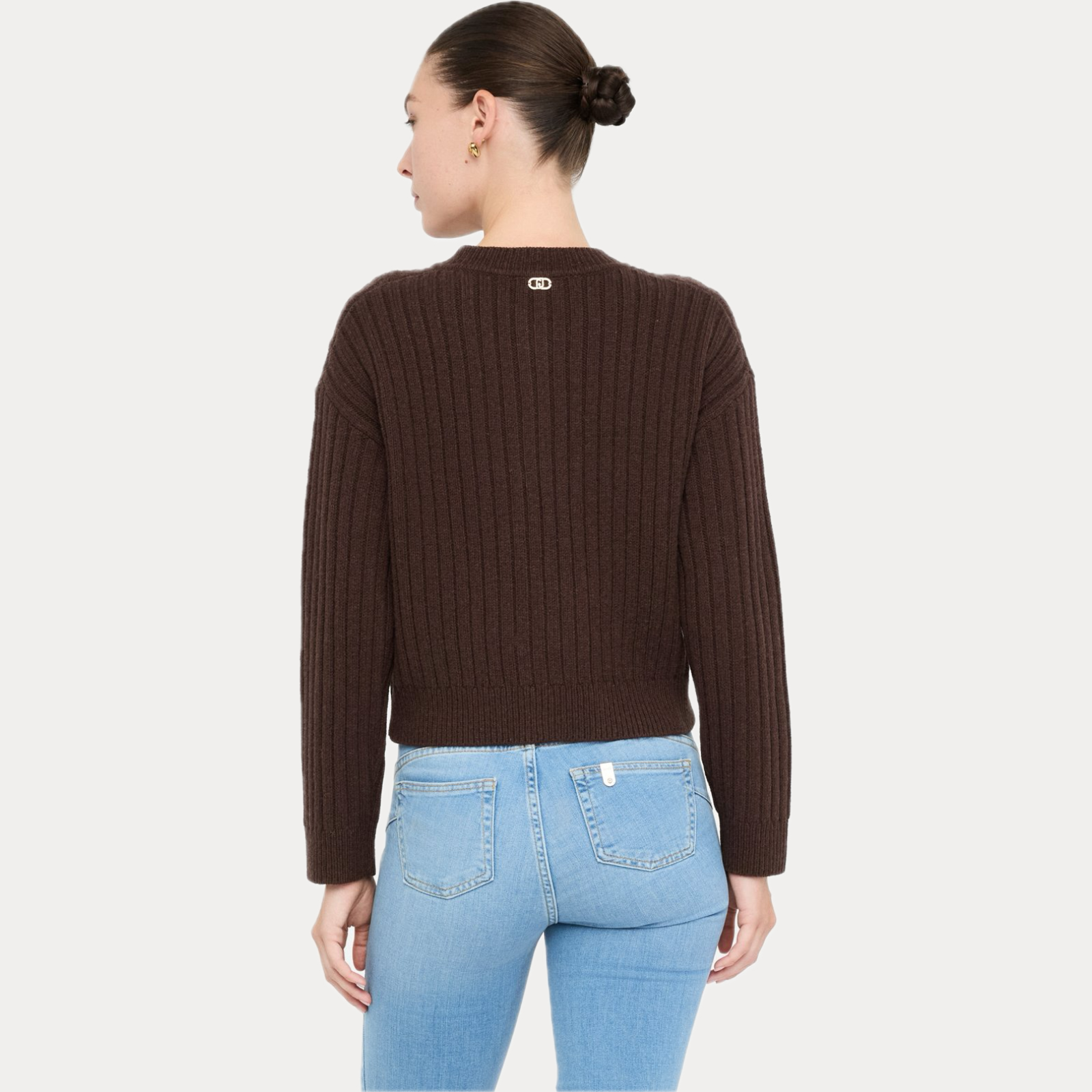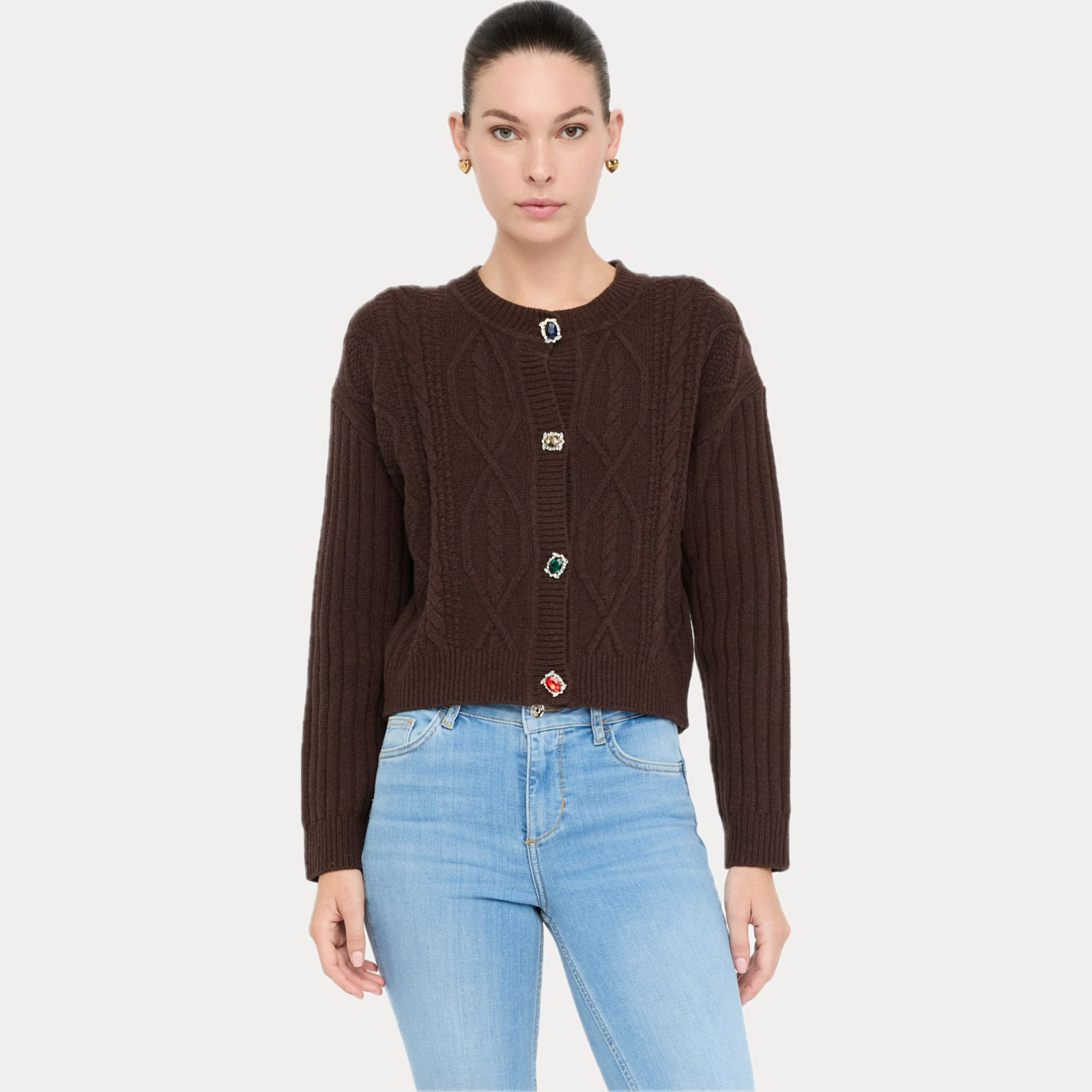 LIUJO - CARDIGAN DONNA MARRONE IN LANA CON BOTTONI GIOIELLO