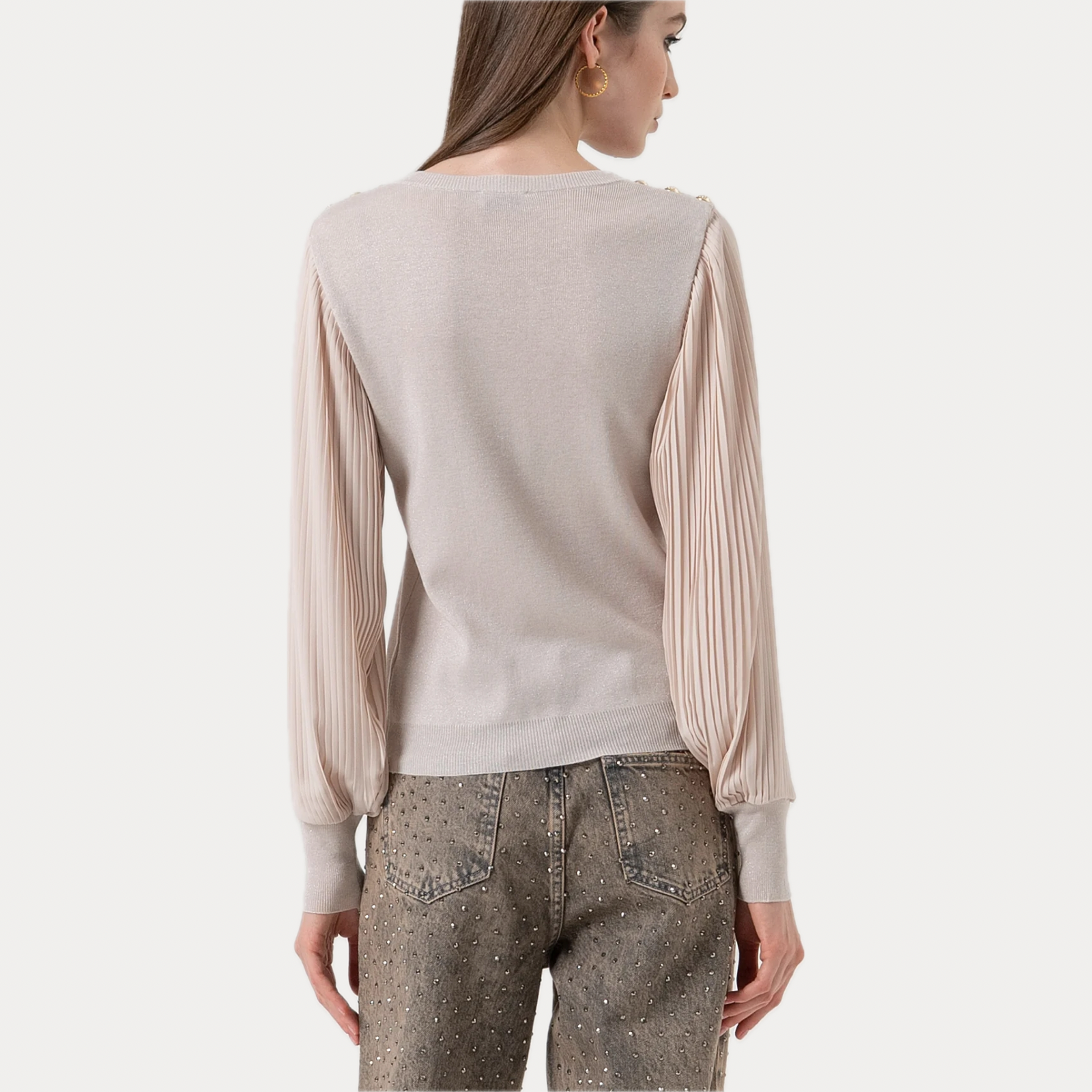 FRACOMINA - MAGLIA DONNA BEIGE CON MANICHE PLISSE&