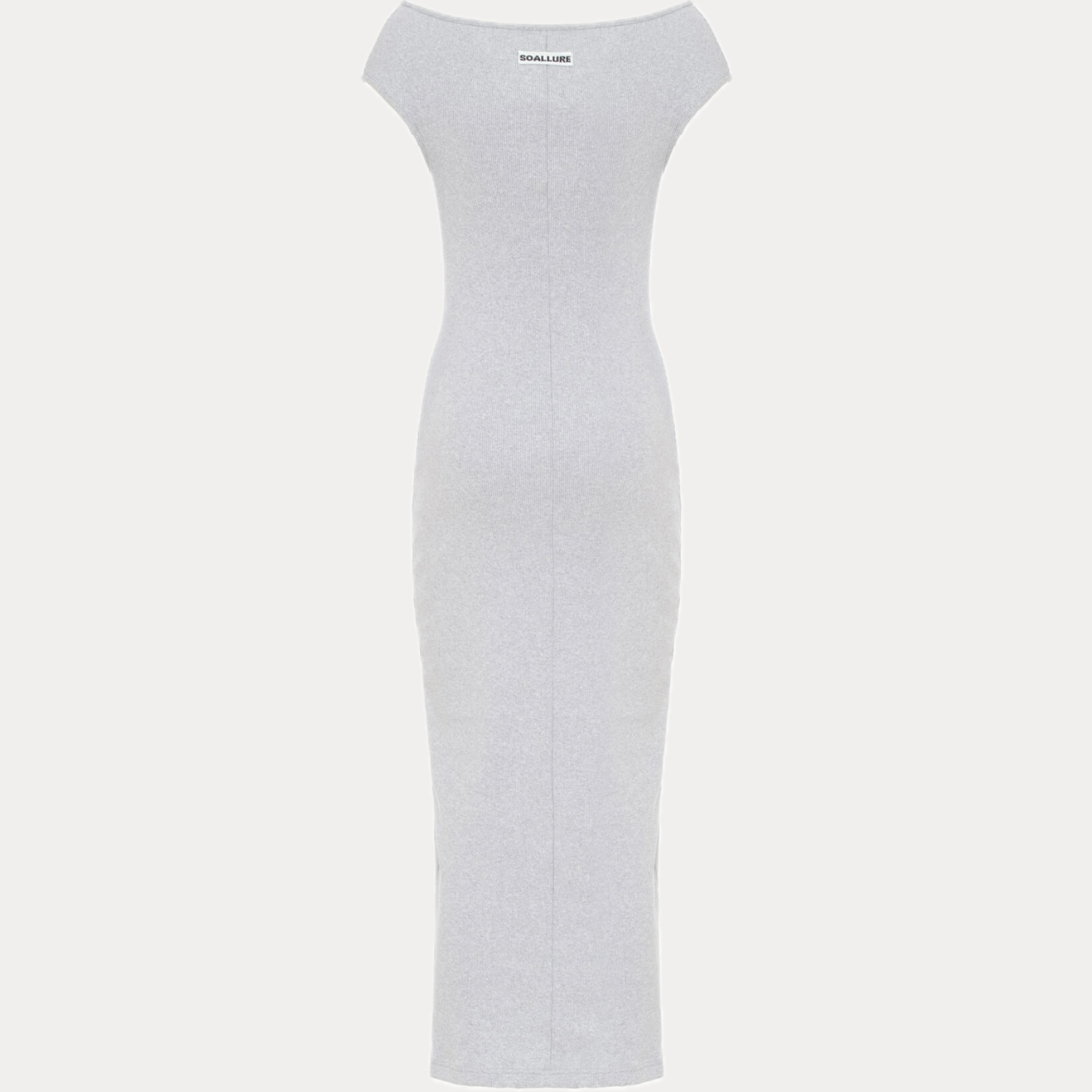 SOALLURE - ABITO DONNA GRIGIO IN COTONE A COSTINE