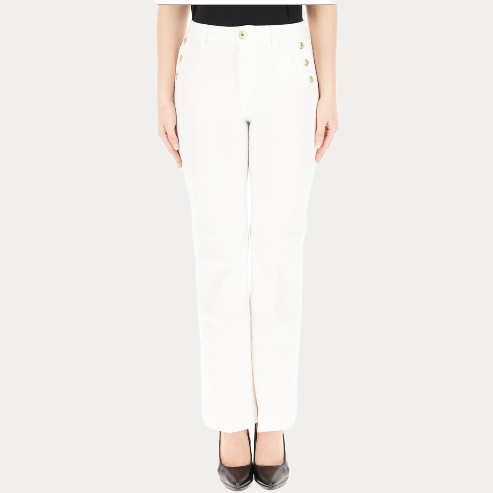 PANTALONI BIANCHI A SIGARETTA CON BOTTONI DECORATIVI FIRMATO LIUJO