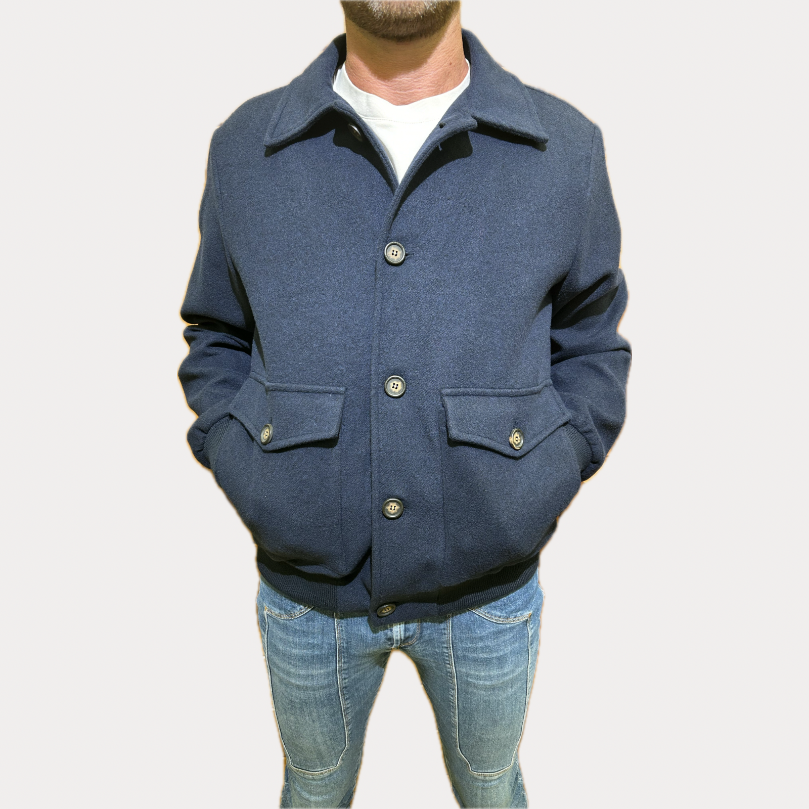 Giubbotto in misto lana con chiusura con bottoni e tasche frontali. Interno fantasia check.