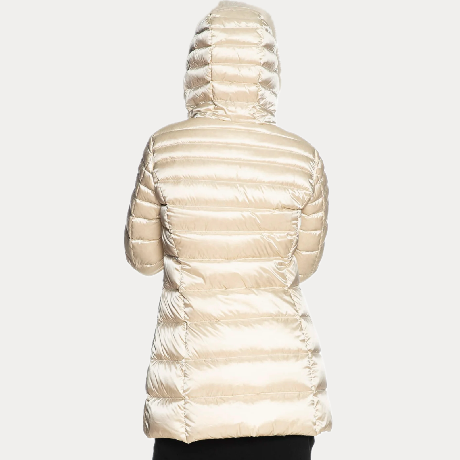 Piumino Refrigiwear Long Mead Fur Jacket panna lunghezza tre quarti con bordo in pelliccia sul cappuccio chiusura zip imbottitura in piuma e etichetta logo sulla manica