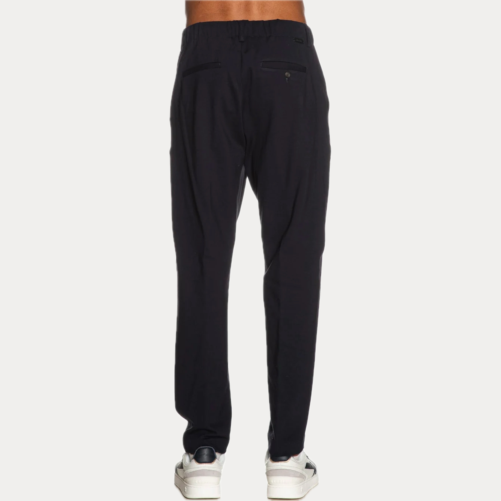 Pantalone Siviglia Picasso da uomo in jersey stretch di viscosa e poliammide, modello chino, con vita elasticizzatra nel retro, chiusura con zip coperta e bottone anteriore, tasche america nella parte davanti e a filo posteriori